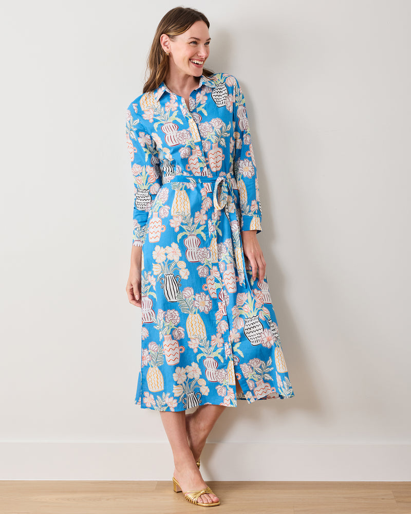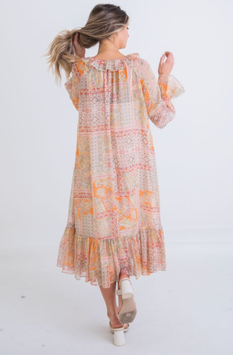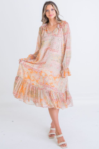 PAISLEY CHIFFON RUFFLE MIDI DRESS