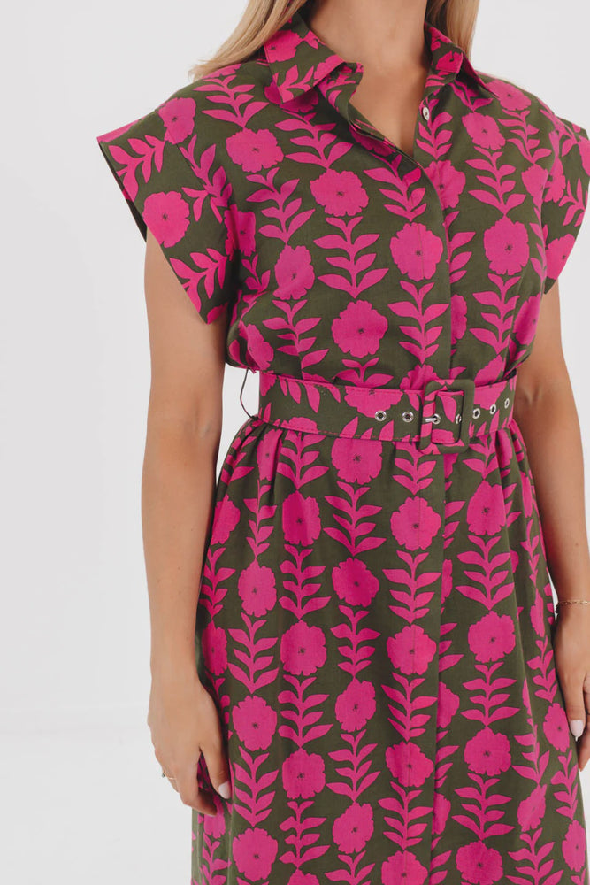 KENNA BELTED BUTTON UP DRESS